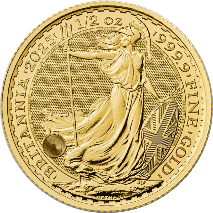 Die Britannia in 1/2 oz vereint die Stärken der britischen Referenz-Goldmünze mit einer flexiblen Stückelung. Geprägt von der Royal Mint aus 999,9/1000 Feingold, bietet sie seit 2021 besonders fortschrittliche Sicherheitsfeatures: Latentbild (Trident/Schloss), Oberflächenanimation in Wellenstruktur, Mikrotext und präzise Tinkturlinien. Der Avers zeigt – je nach Jahrgang – König Charles III. (ab 2023) oder Königin Elizabeth II. (bis 2022); die Revers-Seite die personifizierte Britannia mit Schild und Dreizack.