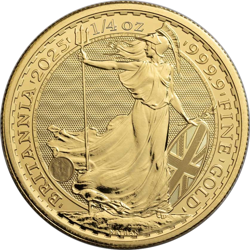 Die Britannia 1/4 Unze ist die britische Anlagemünze aus 999,9/1000 Feingold (Royal Mint) mit 7,7759 g Feingold, vier Sicherheitsmerkmalen (Latentbild, Wellen-Animation, Mikrotext, Tinkturlinien) und hoher Liquidität. In der EU als Anlagegold mehrwertsteuerfrei. Auf Wunsch diskrete, versicherte Auslieferung oder dokumentierte Sammelverwahrung bei FOURNINER.