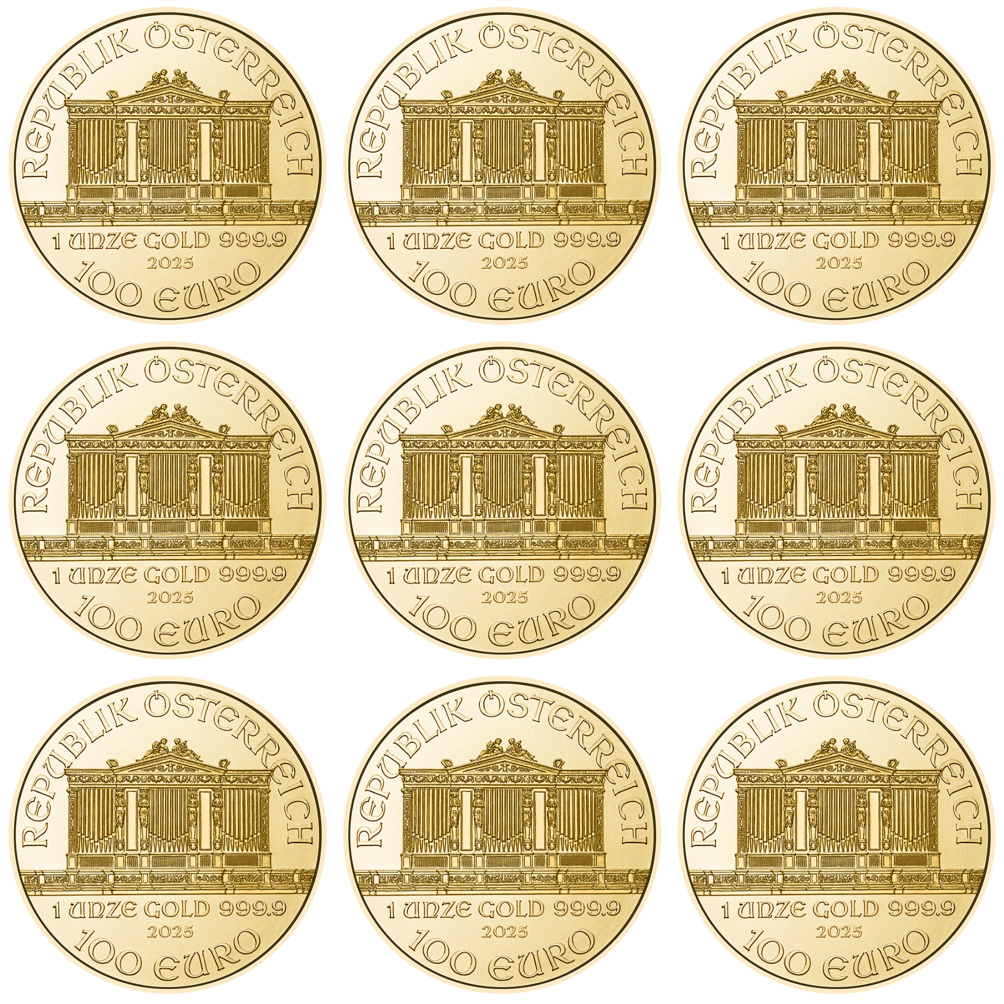 Depot-Inhalt: 10× Wiener Philharmoniker 1 oz (999,9/1000).
