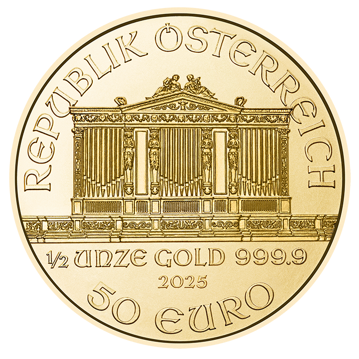 Der Wiener Philharmoniker in 1/2 oz (15,5517 g) ist die vielseitige Stückelung der weltweit bekannten Anlagemünze der Münze Österreich. Geprägt aus 999,9/1000 Feingold zeigt er die Orgel des Goldenen Saals des Wiener Musikvereins sowie klassische Orchesterinstrumente. Die Kombination aus maximaler Reinheit, internationaler Anerkennung und flexibler Stückelung macht den 1/2-Unzen-Philharmoniker zur praktischen Wahl für planbaren Bestandsaufbau und regelmäßige Zukäufe.